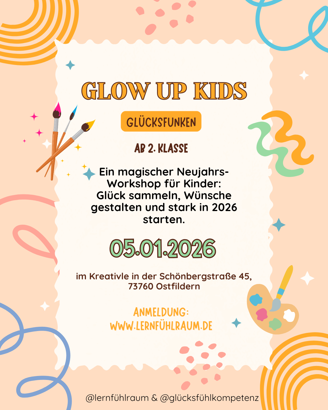 In diesem besonderen Neujahrs-Workshop tauchen die Kinder kreativ in die Welt der Glücksmomente, Wünsche und inneren Stärken ein. Gemeinsam entdecken wir, was sie im alten Jahr strahlen ließ, welche Funken sie mit ins neue Jahr tragen möchten und wie sie ihre eigenen Wünsche mutig gestalten können. ✨